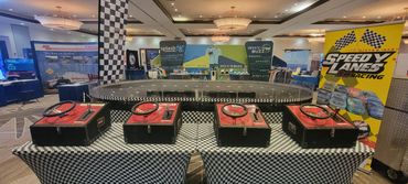 For an increased WOW factor, consider our 16' x 28' track where we can run up to 6 cars at a time. While outdoors is the preference for this setup, indoor events with sufficient space can be accommodated.